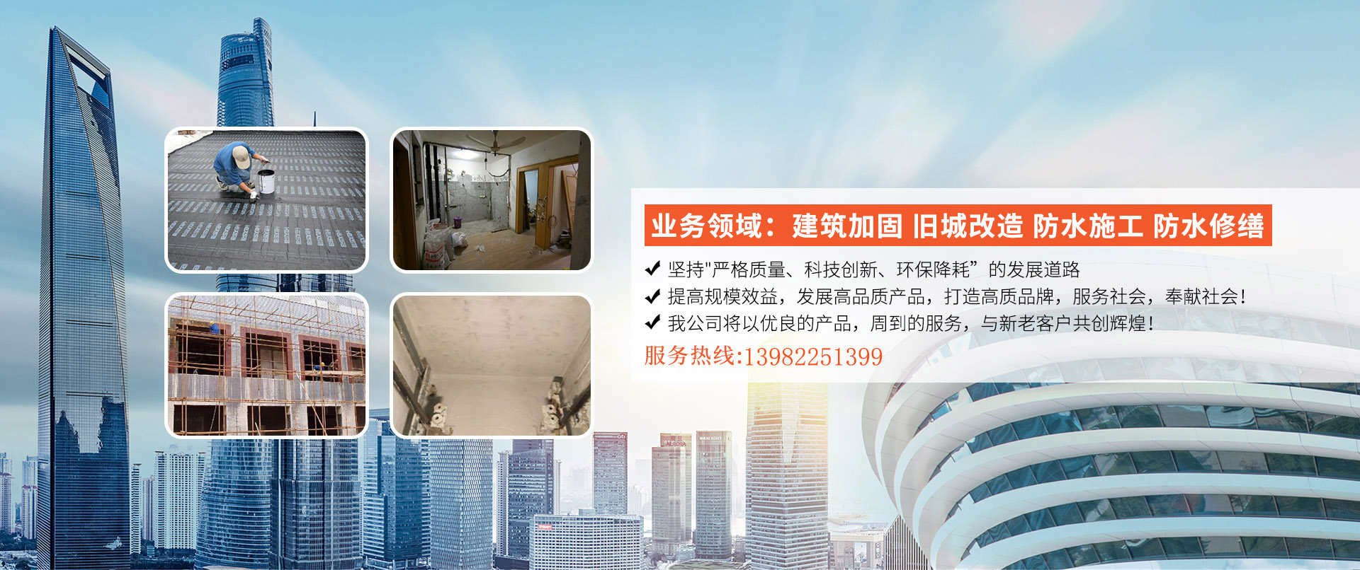 綿陽(yáng)華之杰商貿(mào)有限公司專(zhuān)業(yè)集防水修繕、建筑加固、舊城改造、防水材料銷(xiāo)售、防水工程施工、建筑防水翻修及防水堵漏工程于一體。 我公司一直堅(jiān)持"以質(zhì)量求生存、以信譽(yù)求發(fā)展、以市場(chǎng)為導(dǎo)向、向管理要效益”的企業(yè)理念,靠科學(xué)的管理手段、先進(jìn)的設(shè)備和嚴(yán)格的工藝流程、強(qiáng)烈的事業(yè)心,贏(yíng)得了廣大用戶(hù)的信任和好評(píng)。 我公司秉承“"品質(zhì)精益求精,誠(chéng)信追求永恒”的核心理念,堅(jiān)持"嚴(yán)格質(zhì)量、科技創(chuàng)新、環(huán)保降耗”的發(fā)展道路,提高規(guī)模效益,發(fā)展高品質(zhì)產(chǎn)品,打造高質(zhì)品牌,服務(wù)社會(huì),奉獻(xiàn)社會(huì)!我公司愿以?xún)?yōu)良的產(chǎn)品,周到